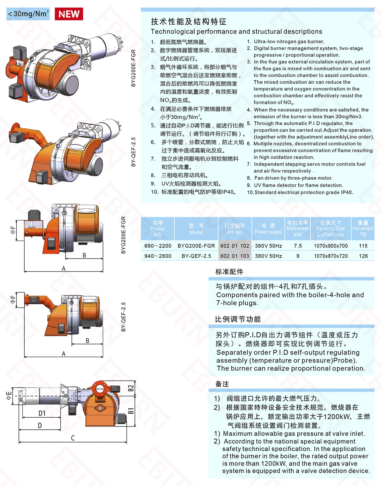BY -QEF 0.8 240-960kW 兩段火漸近式/比例調(diào)節(jié)式低氮燃氣燃燒器