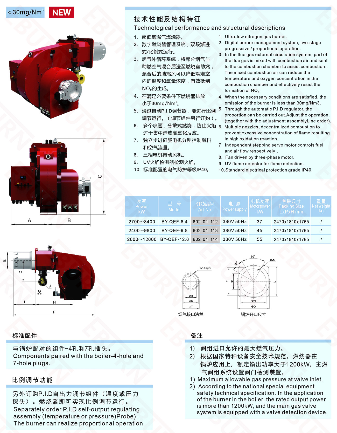 BY -QEF 0.8 240-960kW 兩段火漸近式/比例調(diào)節(jié)式低氮燃氣燃燒器